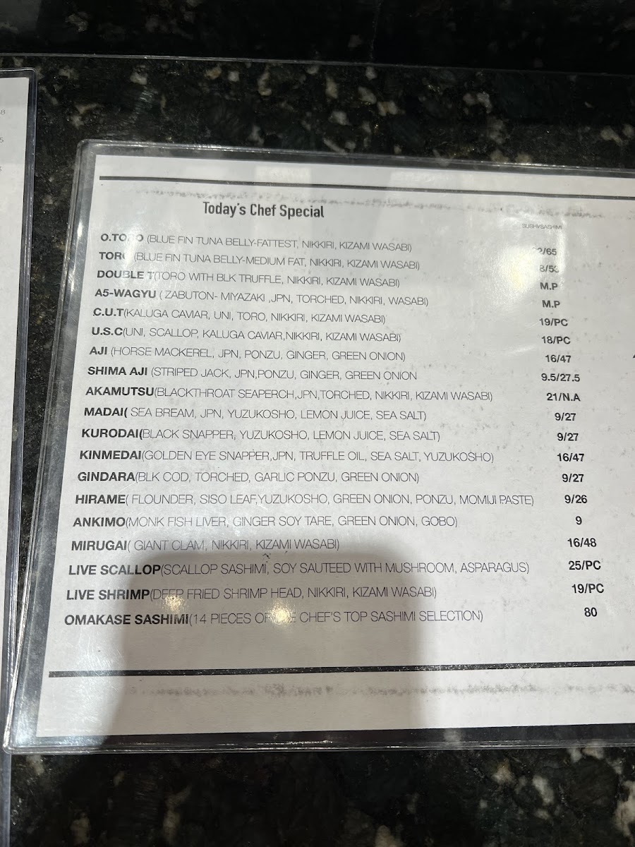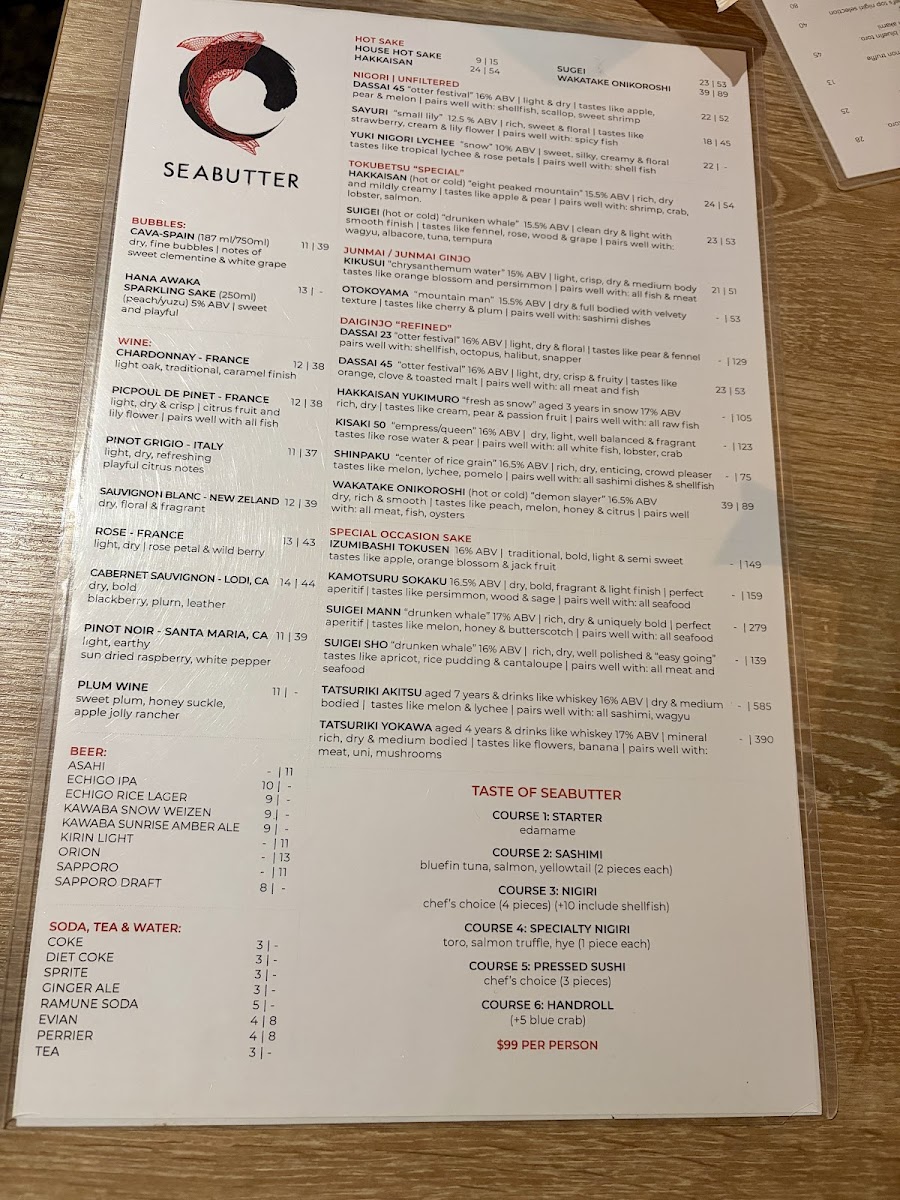 1 piece nigiri each: hye, emma, salmon truffle, & uni-scallop